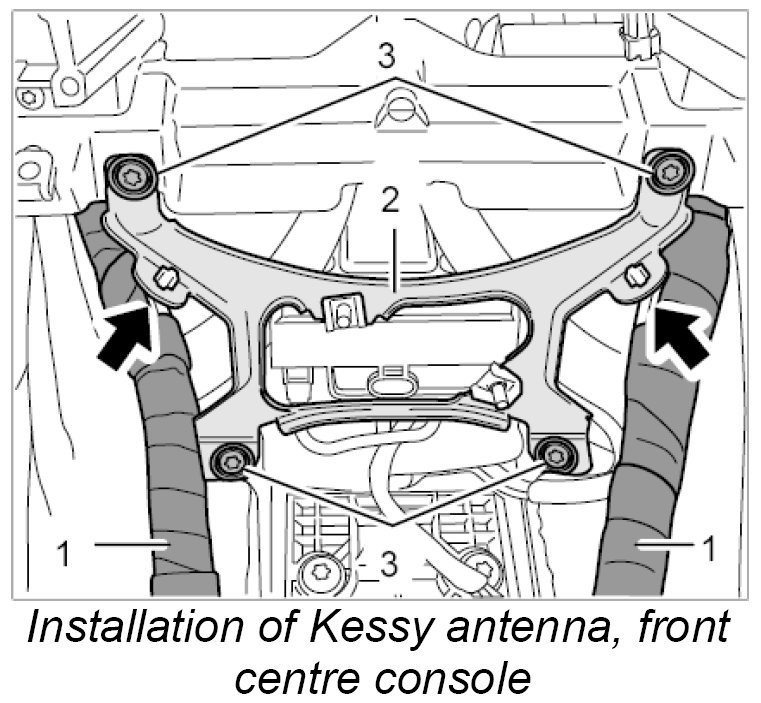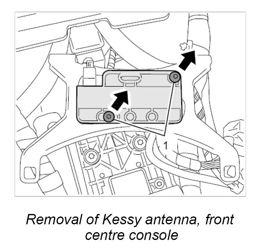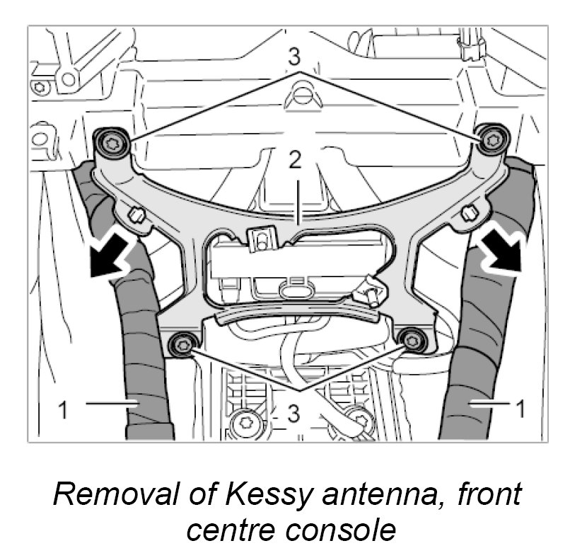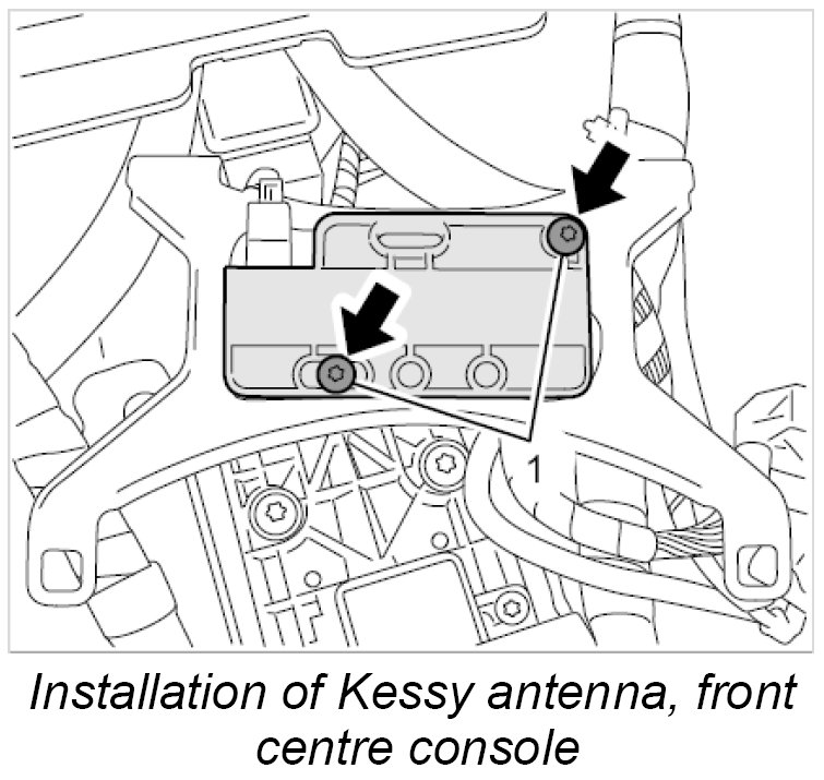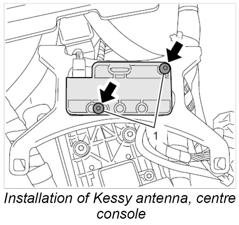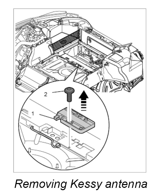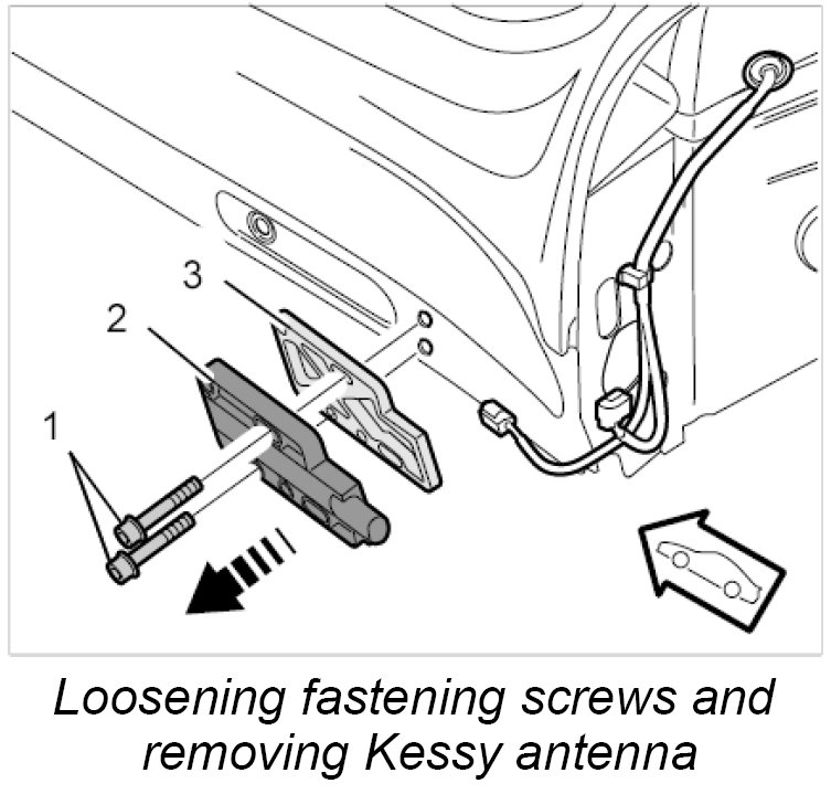 2. Unscrew fastening screw -2- and remove Kessy antenna -1-.