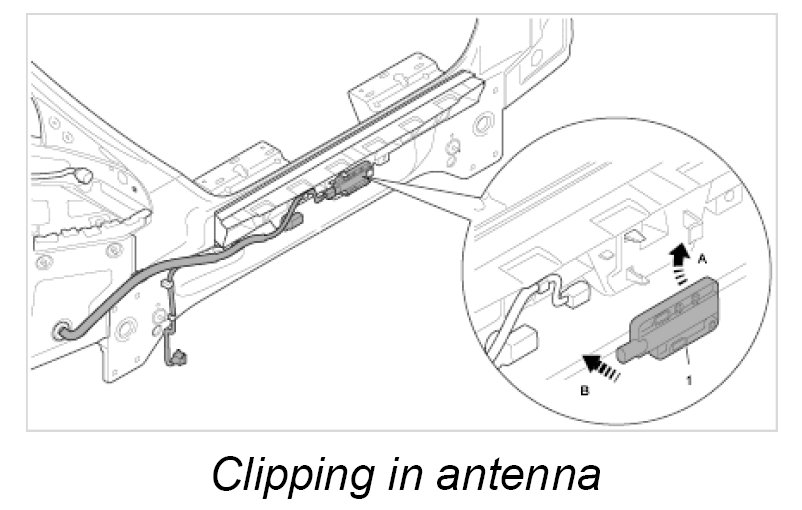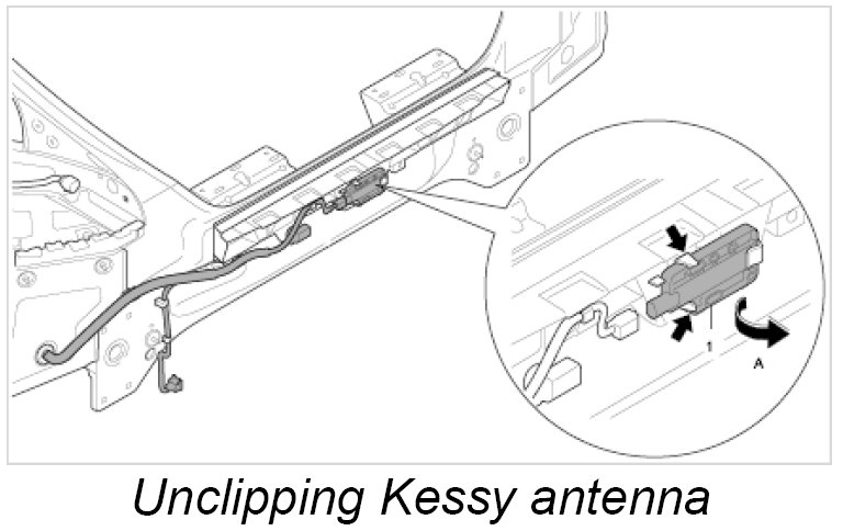 2. Unclip Kessy antenna -1- and remove it -A-.