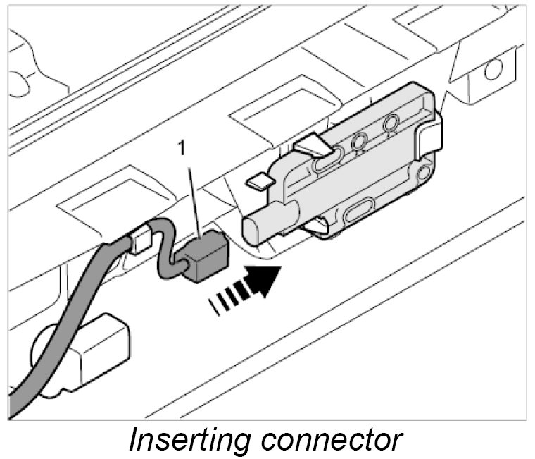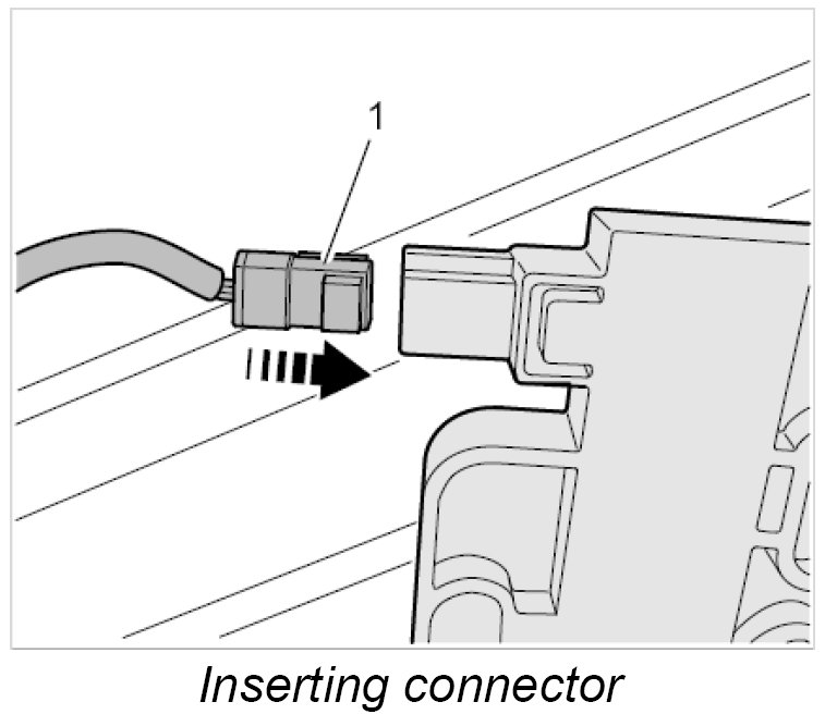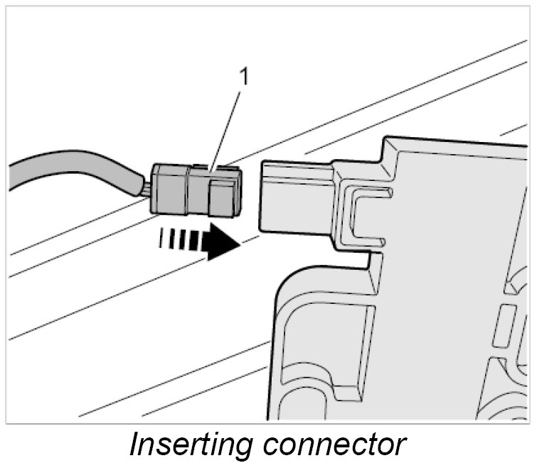 1. Insert the electric plug connection -1- until the connector engages securely.