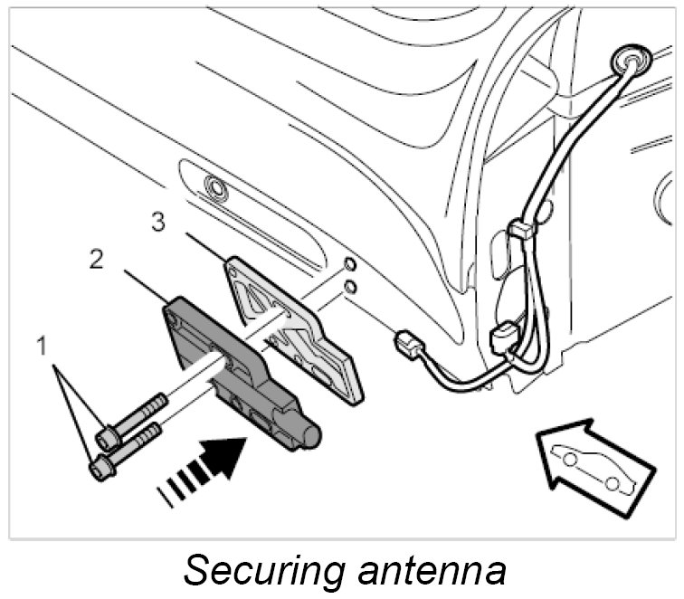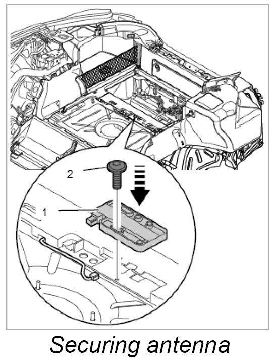 1. Place antenna -1- in position and screw in fastening screw -2-.