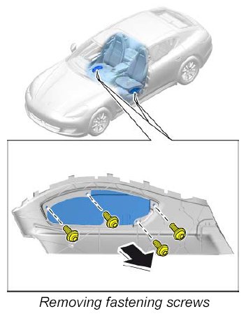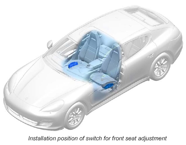 1. Remove the four fastening screws -arrow- for the seat adjustment switch.