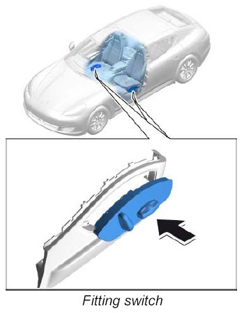 1. Fit seat adjustment switch into the trim panel -arrow- .