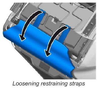 1. Loosen the two restraining straps on the rear part of the seat -arrows- .
