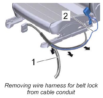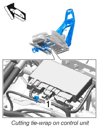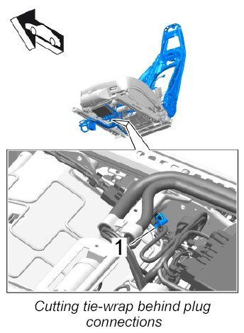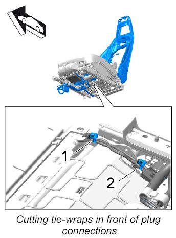- Cut and replace all tie-wraps used to secure the wire harness to the backrest.