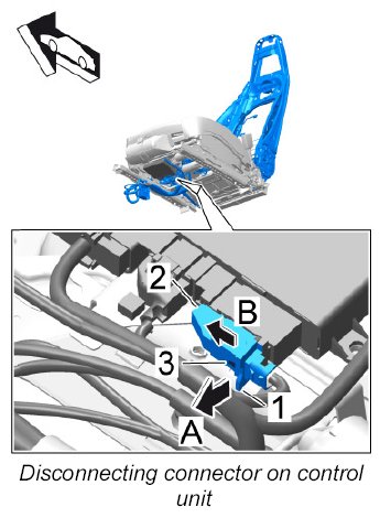 3.5. Lift the locking mechanism -1- on the connector -2- on the control unit using a screwdriver -A- and release it using the locking lug -3- ( -B- ).