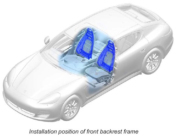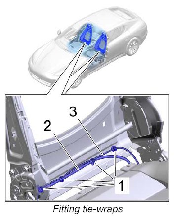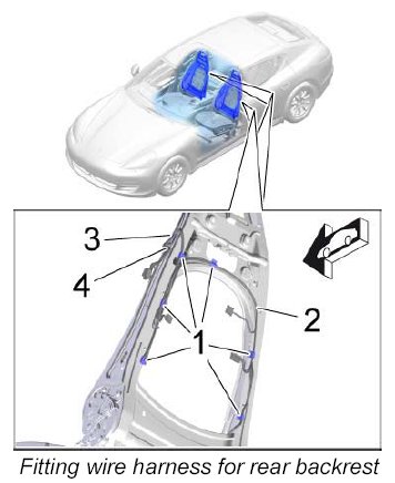 2.2. Fit the holder -3- for the side airbag wire harness -4- and lines on the backrest frame.