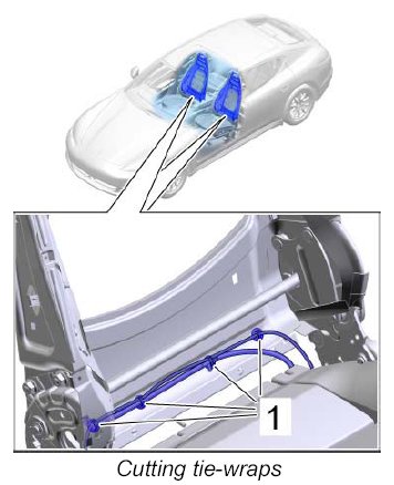 - Cut and replace all tie-wraps used to secure the wire harness to the backrest.