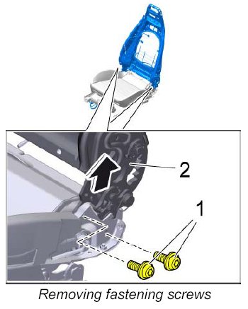 Unscrew fastening screws -1- and remove the left backrest side bolster support -2- .
