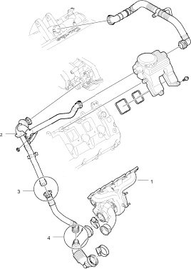 4 - Full-throttle ventilation one-way coupling to intake manifold => Cannot be refitted. Make sure the markings are positioned correctly with respect to each other during initial fitting.