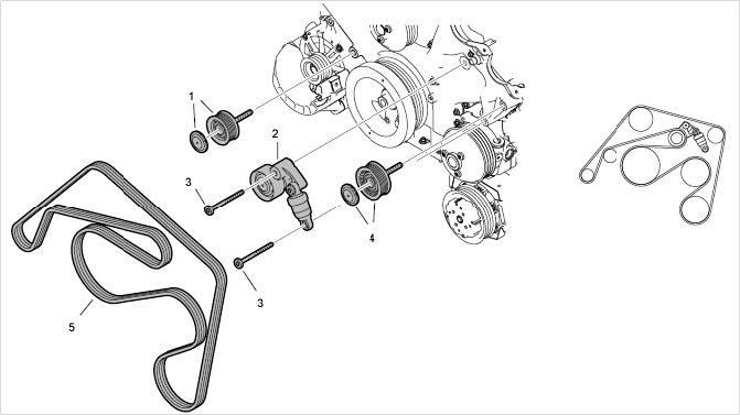 2. Remove belt tensioner and deflection rollers on the timing-case cover. To do this, lever off the cover and loosen the screws.
