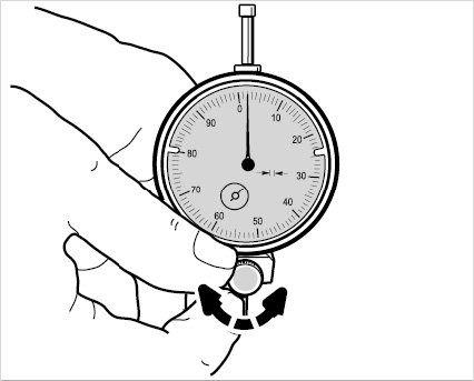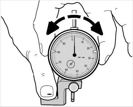 2. Set dial gauge scale to 0. To do this, place the dial gauge bracket on a completely flat surface (e.g. crankcase flange) and turn the dial gauge scale until the pointer is at 0.