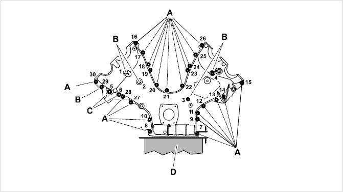 1. Tighten the fastening screws to the relevant parameters in the sequence shown.