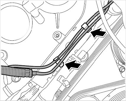 1. On turbo engines, remove positive crankcase ventilation completely in front of the timing-case cover. Be careful with connections that cannot be loosened.