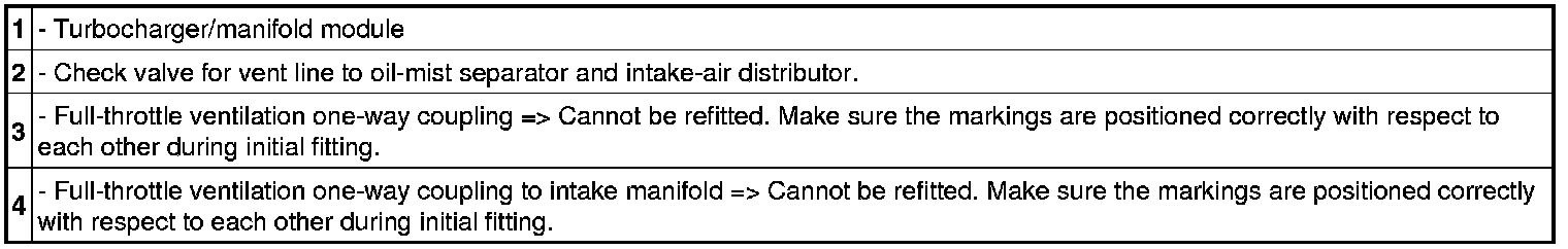 5. On turbo engines, fit positive crankcase ventilation completely in front of the timing-case cover => One-way couplings for ventilation on turbo engines.