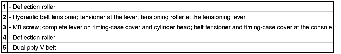 2. Remove belt tensioner and deflection rollers on the timing-case cover. To do this, lever off the cover and loosen the screws. => Belt drive