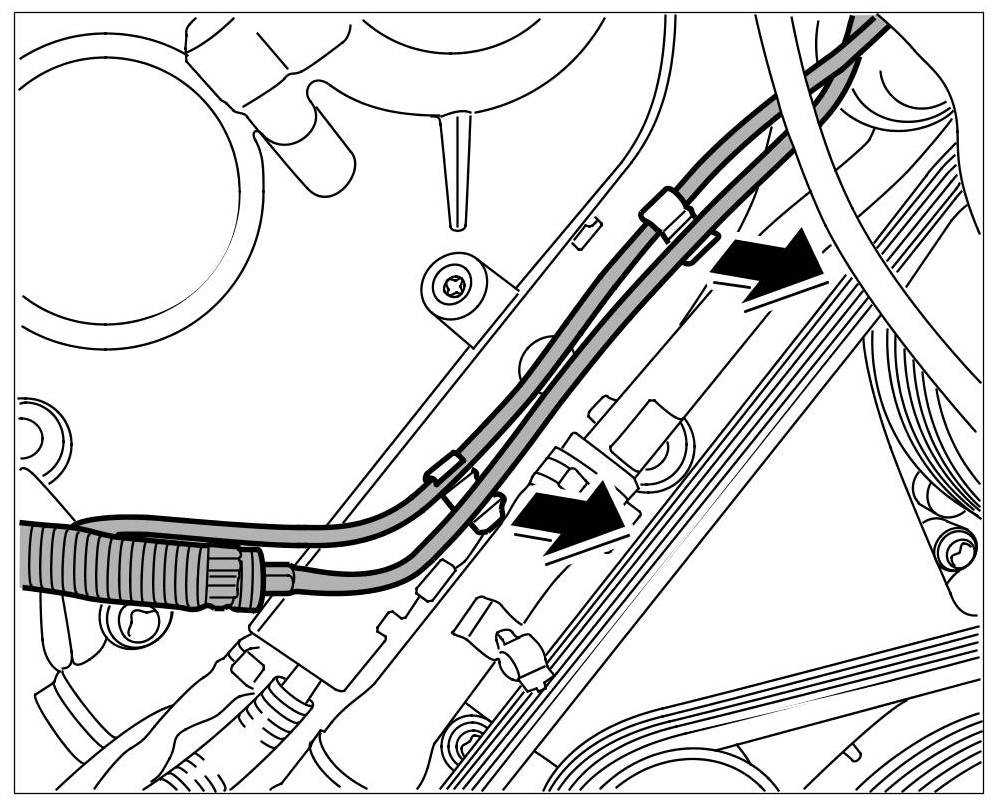 1. On turbo engines, remove positive crankcase ventilation completely in front of the timing-case cover => One-way couplings for ventilation on turbo engines. Be careful with connections that cannot be loosened.