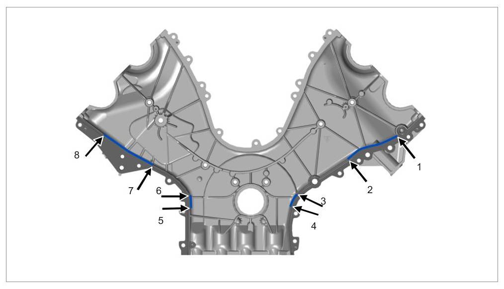 Sealant application to left cylinder bank -7 und 8-