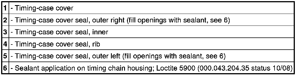 - A modified metal seal has been used for the timing-case cover since mid-2010.