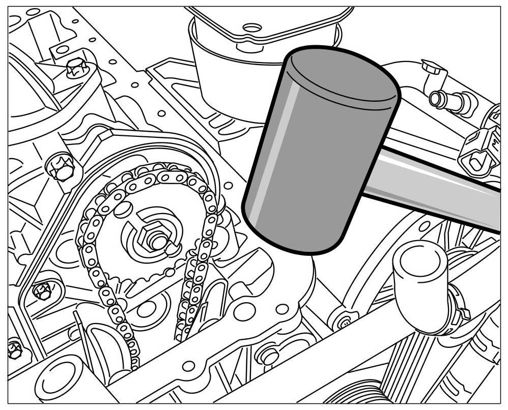 4. Align the timing-case covers by tapping lightly with a rubber hammer. => Aligning timing-case cover