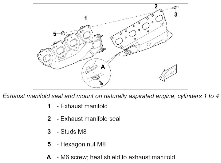 3. Remove exhaust manifold -5-, heat shield and seal -2-.
