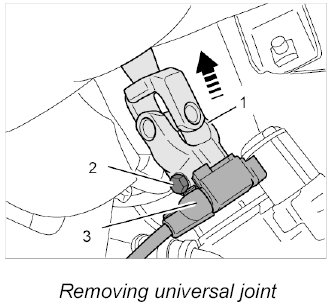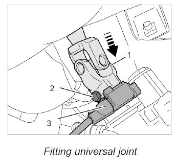 2.4. Slide universal joint -1- and lower part of steering column upwards.