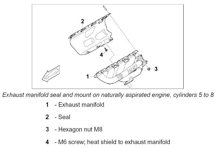 5. Remove exhaust manifold -1-, heat shield and seal -2-.