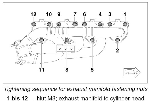 Installing exhaust manifold, cylinders 1 - 4