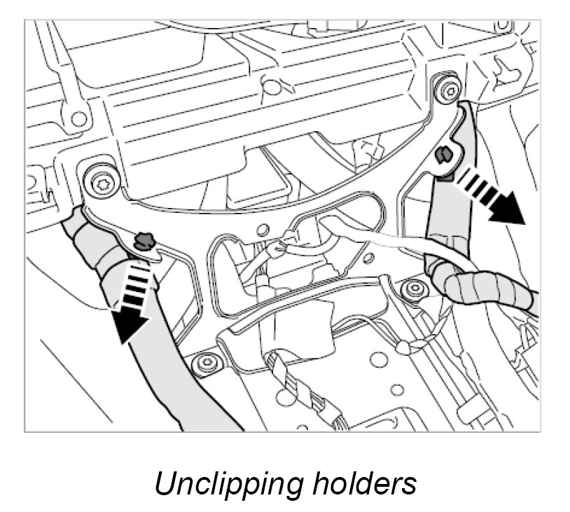 1. Unclip the two wire harness holders.