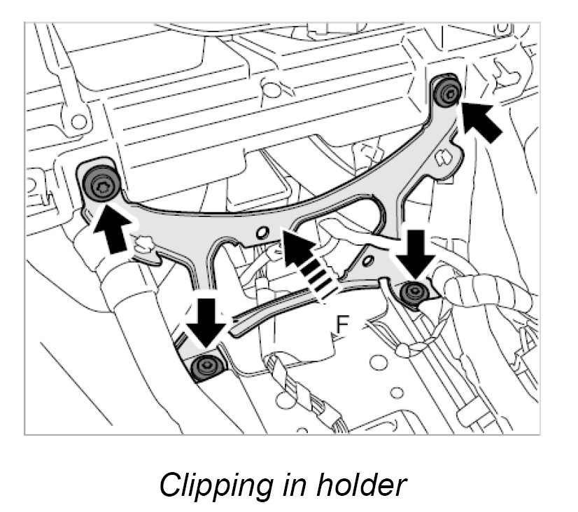 7. Clip in the two wire harness holders.