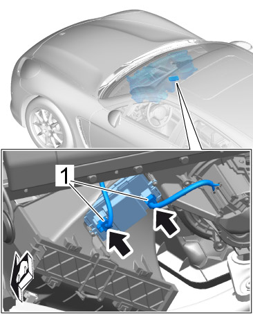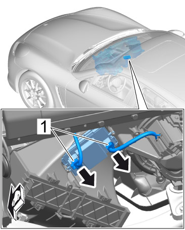 2. Release and pull off electric plug connection -1- on the blower regulator -arrow-.