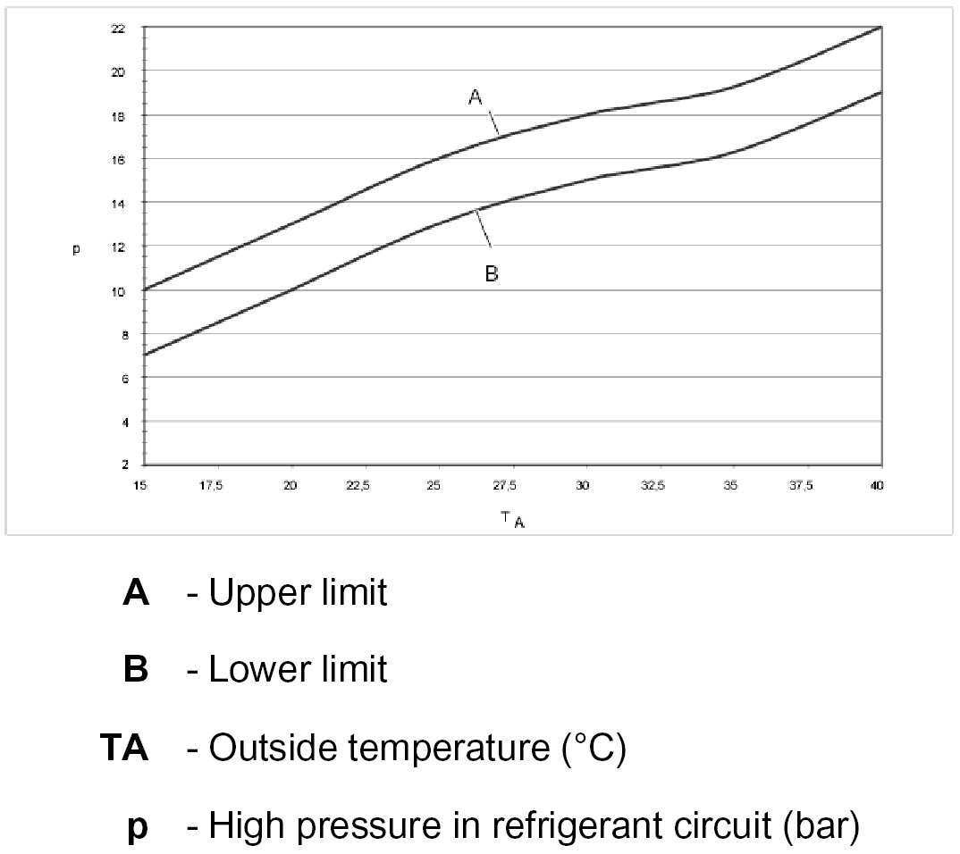 - If the specified nominal values are not reached, the air conditioner must be checked for leaks and repaired.