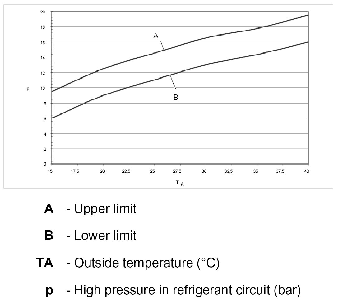 High pressure in refrigerant circuit as a function of outside temperature: 2-zone air conditioning