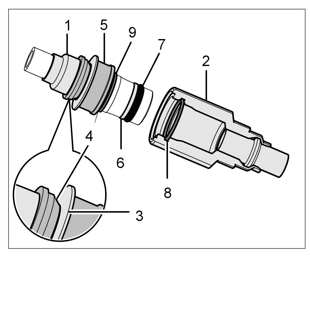Another sure sign of a correctly locked plug-in coupling is the bulbous shape of the axial spring -5-.