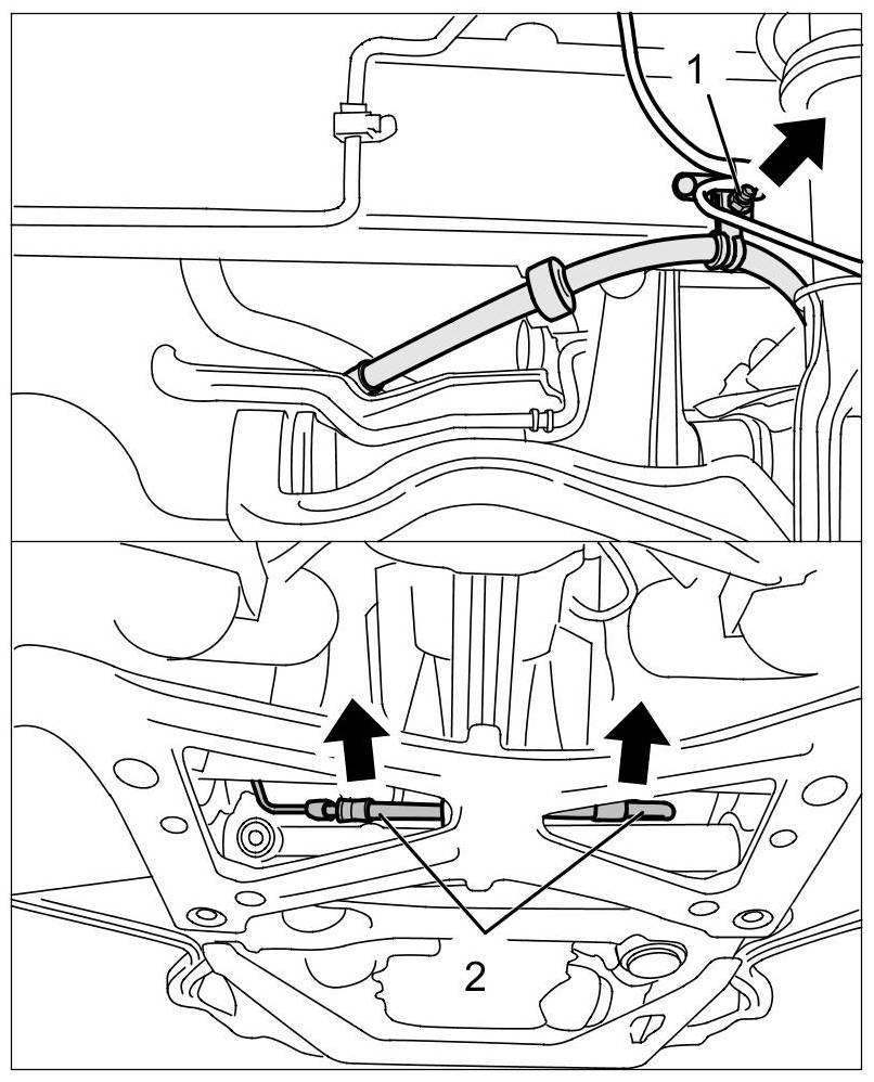 2.3. Unscrew the nuts -2- on the line bracket on the steering gear.