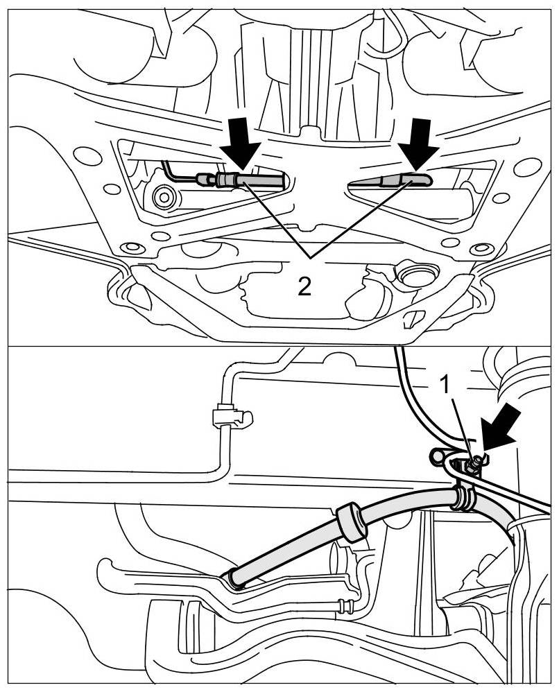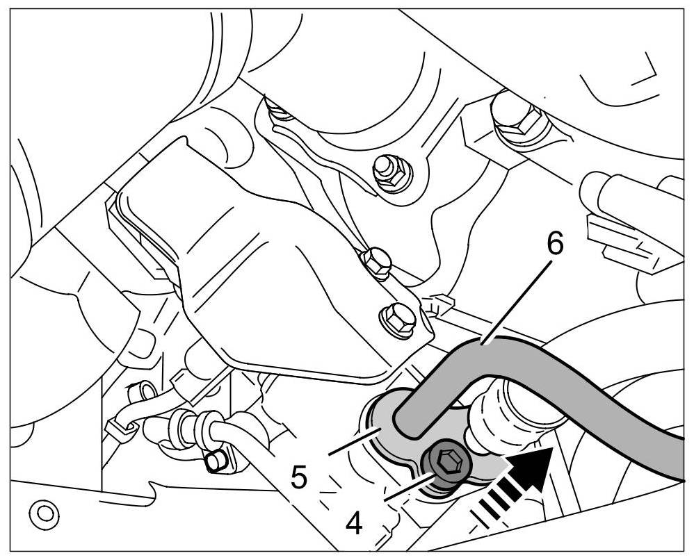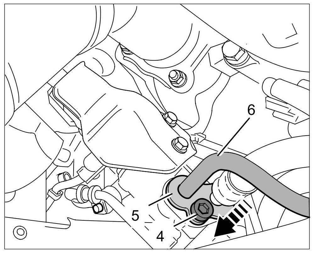 2.1. Unscrew the fastening screw on the line bracket on the air conditioning compressor.