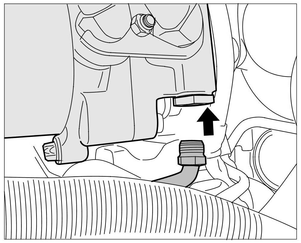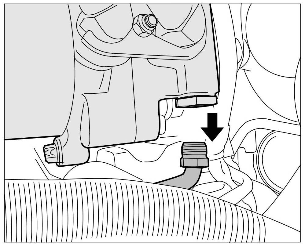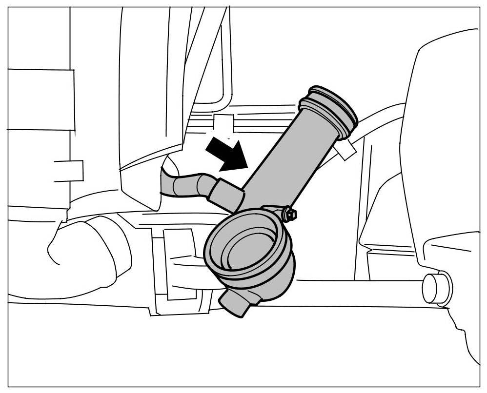 6. Remove the lower charge air line (in the left wheel housing) together with the positive crankcase ventilation hose. To do this, pull the complete vent line in the assembly through in a downward direction. -> 1052IN Information on positive crankcase ventilation (full-throttle ventilation) - section on "Information" Service and Repair