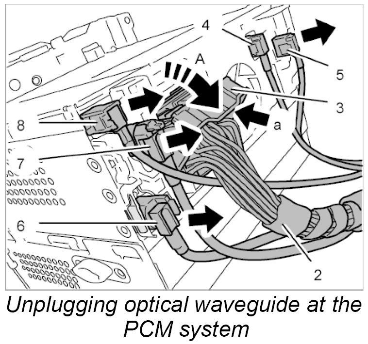 2. Release and unplug the optical waveguide connector at the PCM system.