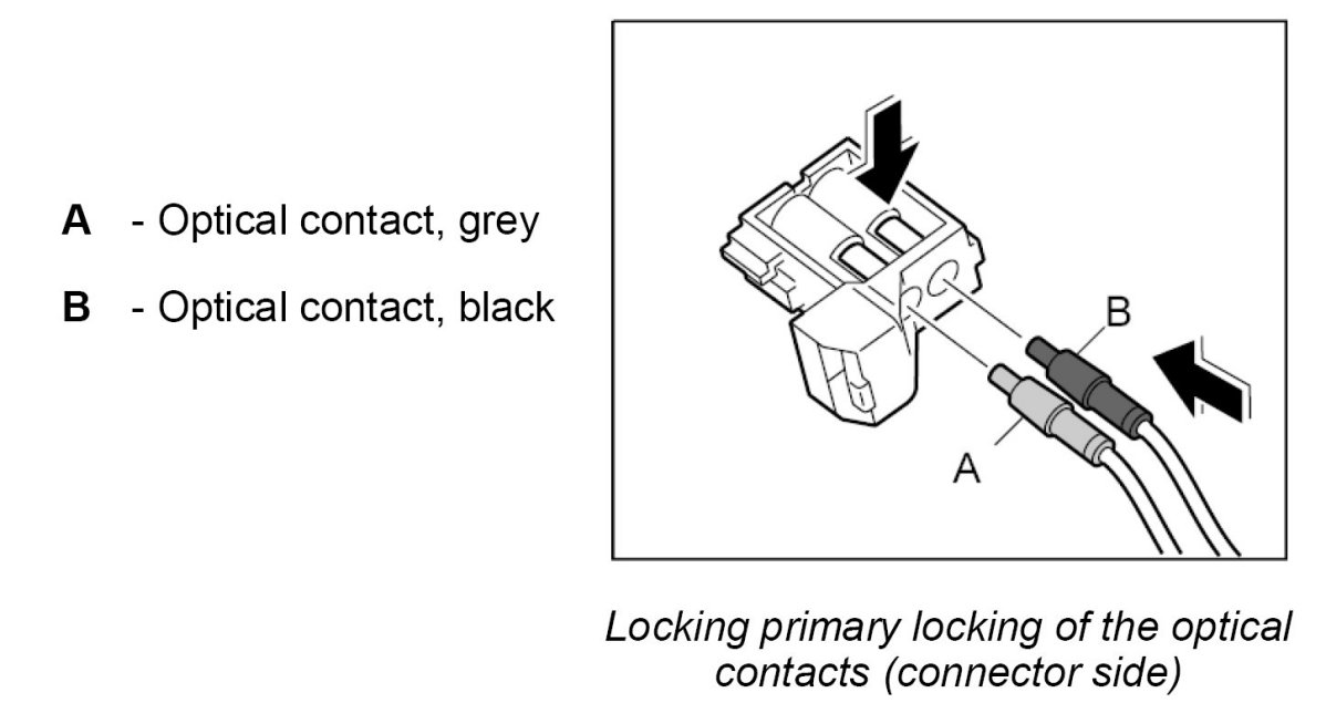 1. Insert the optical contact -A and B- in the connector until it engages audibly.