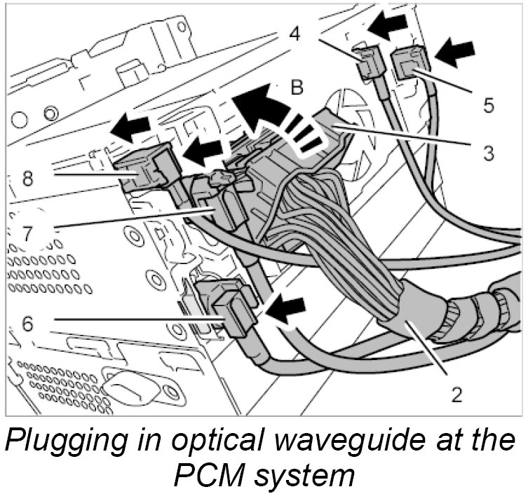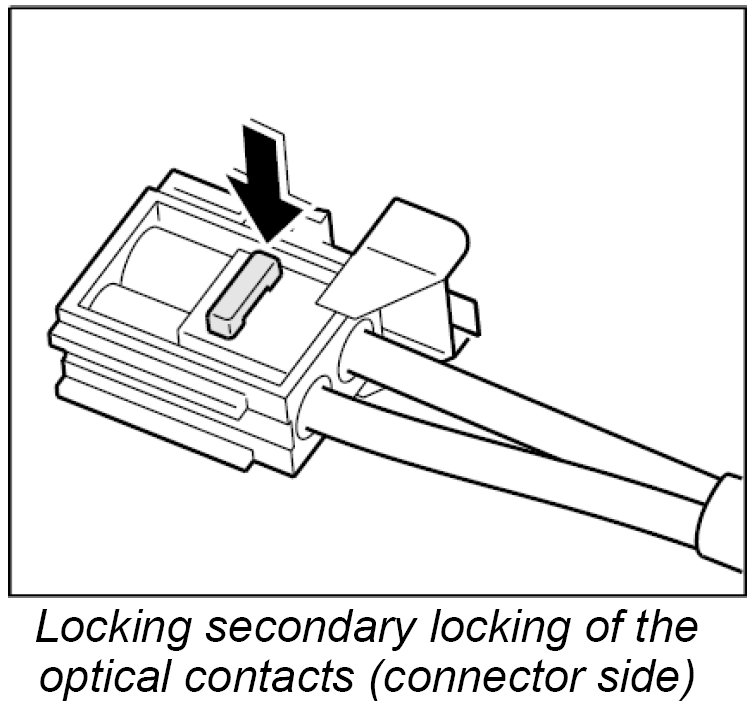 4. Plug in the optical waveguide connector at the PCM system and make sure that the locking mechanism engages securely.