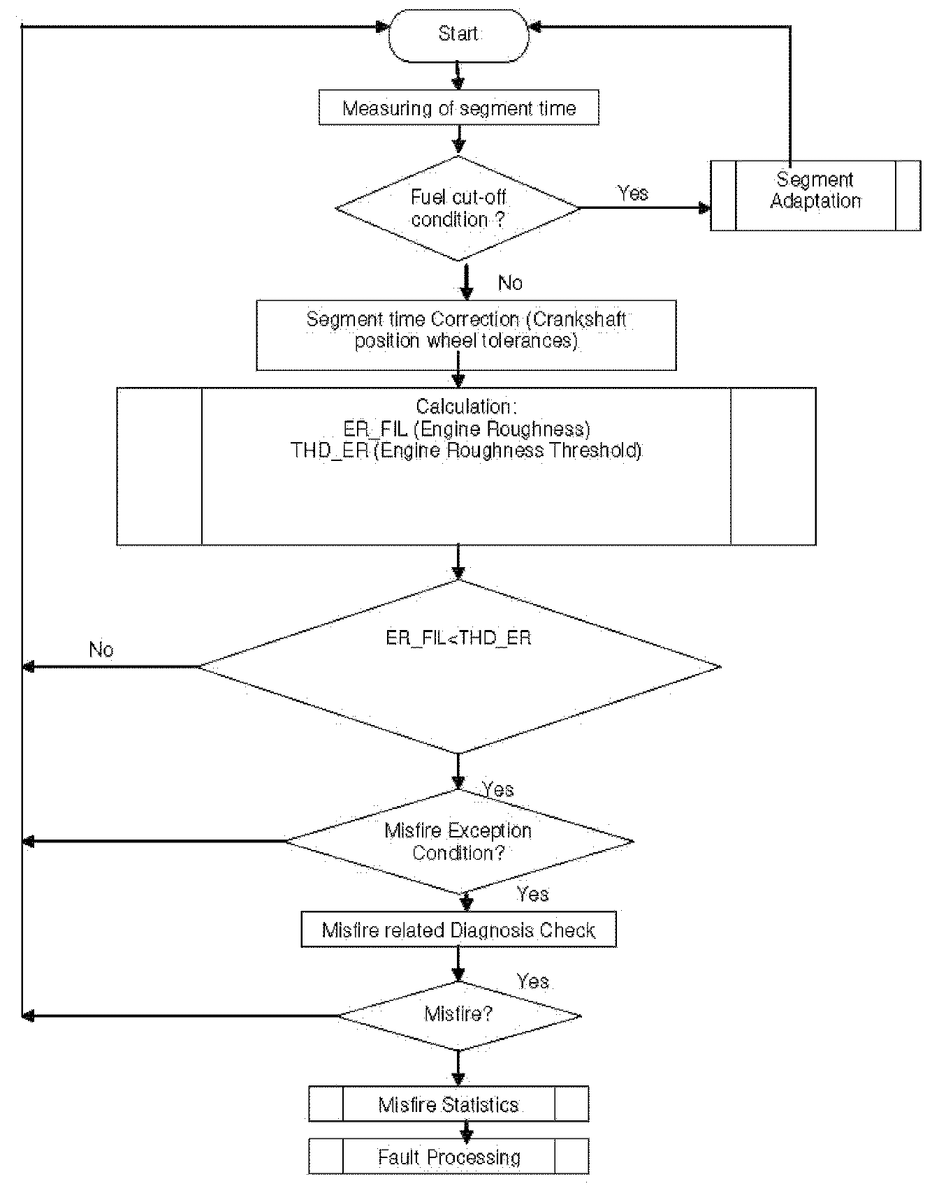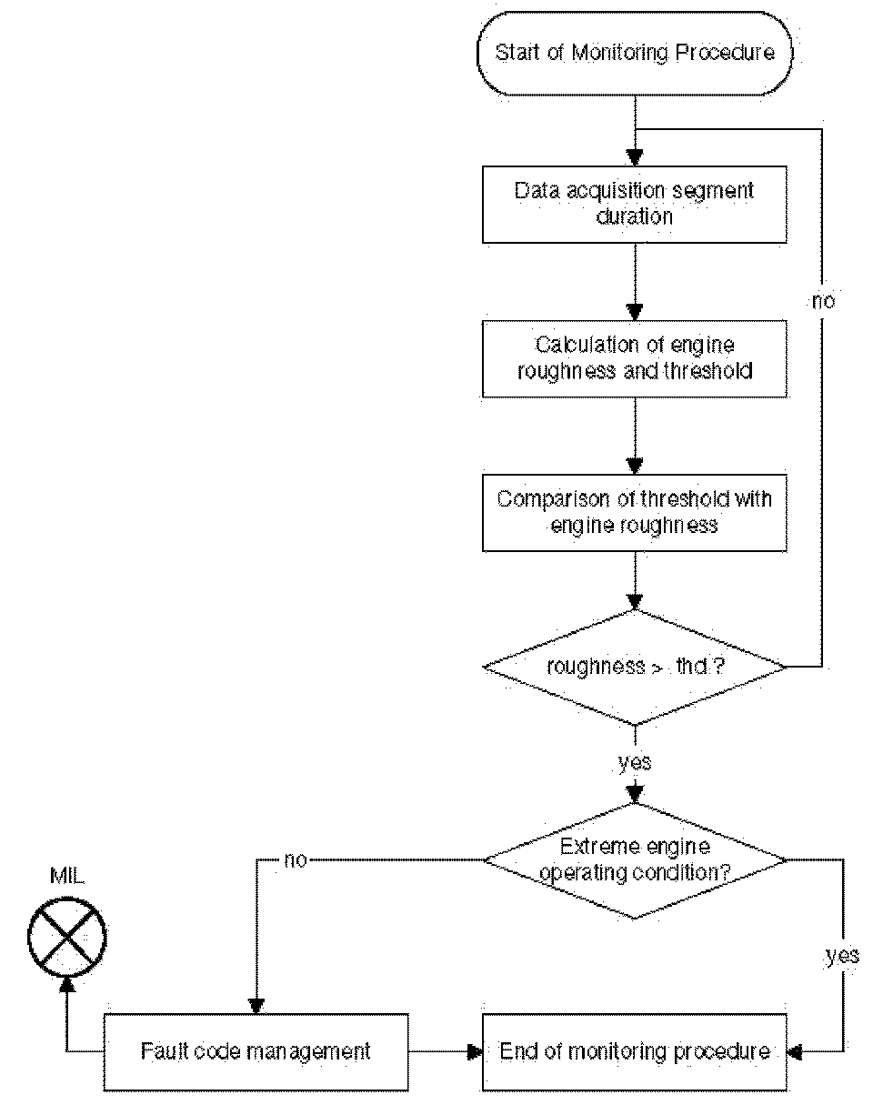 Misfire detection is performed by comparing, the engine roughness threshold value with the engine roughness value. If the threshold is exceeded, single misfire is detected.
