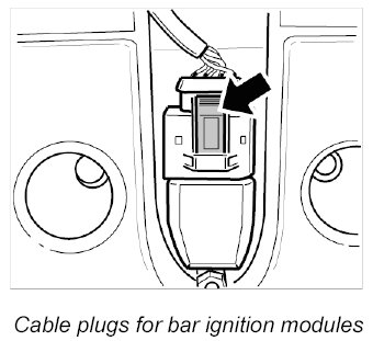 2. Release and pull off cable plugs -> Cable plugs for bar ignition modules. Remove screws from bar ignition modules and replace them (aluminium screws). -> Fastening screw on bar ignition module