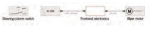The wiper and washer functions are controlled via a steering column switch. This is connected to the control unit via the CAN bus. If no signals are received from the CSCM on the CAN bus, a limp-home mode is activated via the rain sensor. The washer fluid level is monitored by a sensor and the driver is notified if the level is too low.