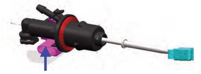 The clutch sensor is installed on the clutch master cylinder in order to record the position of the master piston. The piston contains a permanent magnet for this purpose. The different positions of the magnet generate certain field strengths, which can be used to determine the sensor position. The sensor supplies up to three different signals, which provide information about the position of the piston. Clutch pedal actuated, piston travel and clutch pressed.