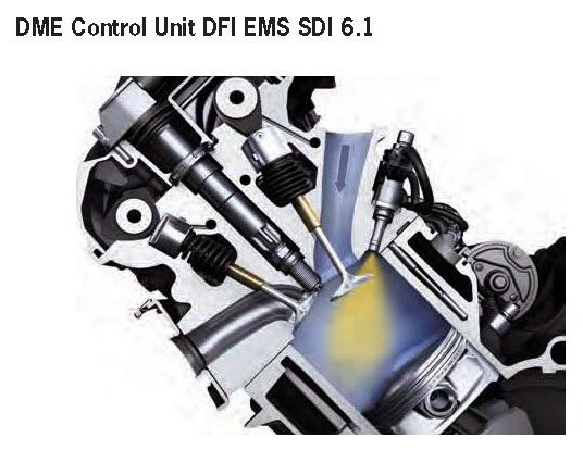 In the case of direct fuel injection, the fuel is injected directly into the combustion chamber, so that the mixture formation takes place almost entirely within the combustion chamber. The direct fuel injection system used in the Panamera engines is based on homogeneous operation when the engine is at operating temperature. The mixture of fuel and air is distributed as evenly as possible in the combustion chamber, thereby enabling optimal combustion. In this process, the fuel is injected directly in the combustion chamber at a pressure of up to 1740 psi (120 bar).