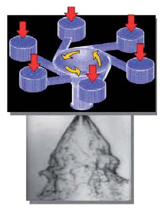 The jet and cone angles of the injectors have been optimized to achieve optimum homogenization across the entire operating range. Within the injector, the fuel jet is swirled (rotated about the longitudinal axis). This rotation forms a cone-shaped cloud of fuel. This results in fine atomization which in turn enables quicker evaporation of the fuel. The heat energy required for this is removed from the air by the fuel evaporation and this cools the air as a result. This reduces the cylinder charge volume and additional air is drawn in through the open intake valve, which in turn improves cylinder filling.