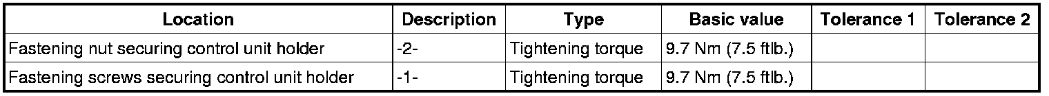 3.1. Position the DME control unit and holder and secure with the fastening nut -2- and the two fastening screws -1-.=> Tightening torque: 9.7 Nm (7.5 ftlb.) => Tightening torque: 9.7 Nm (7.5 ftlb.)