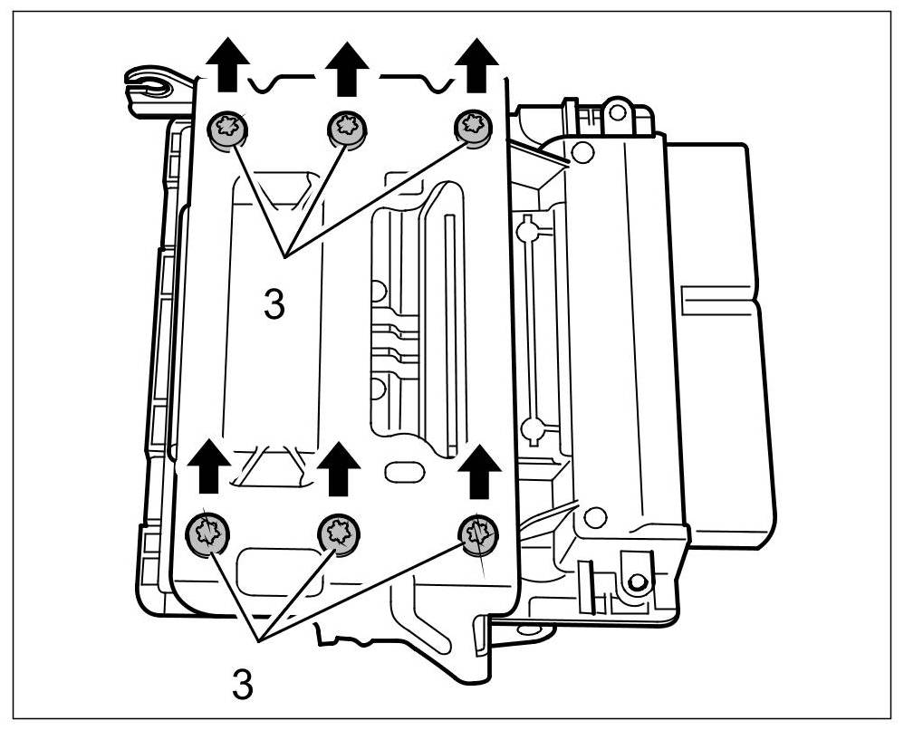 5. Unscrew the six fastening screws -3- on the holder and remove the holder from the DME control unit.