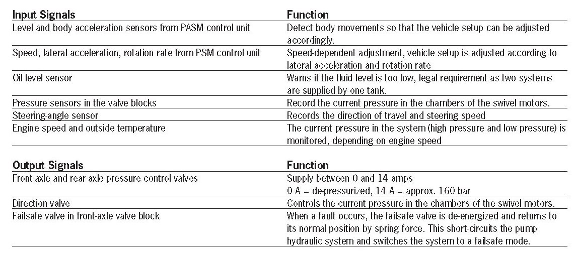 Porsche Dynamic Chassis Control Inputs and Outputs