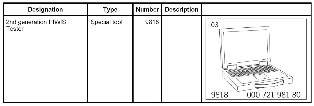 - Carry out tests only with the PIWIS Tester, 2nd generation 9818 diagnostic module; do not use test lamps, voltmeters or ohmmeters.