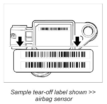 INFORMATION: If a new component (e.g. sensor, airbag control unit, airbag unit) of the airbag system has to be installed, the new component will be supplied with a bar code sticker (tear-off label).